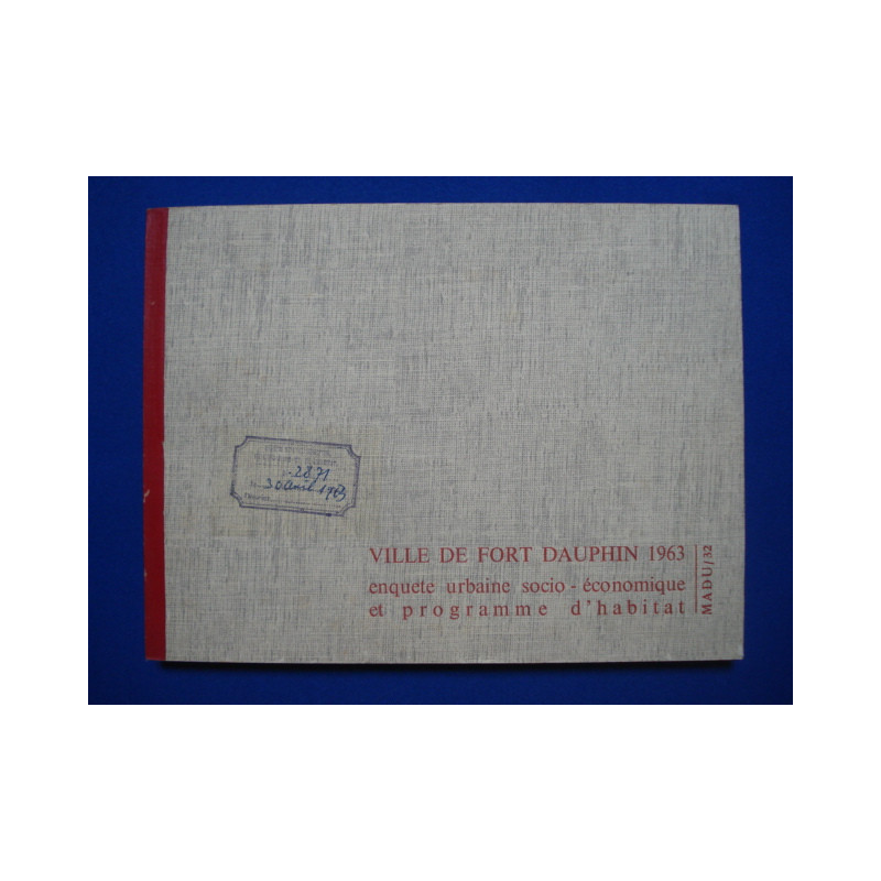 Ville de Fort Dauphin. Enquete Urbaine socio economique et programme d'Habitat