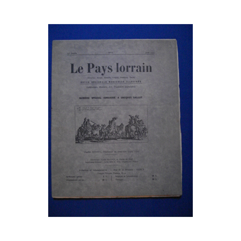Le pays lorrain (Meurthe Meuse Moselle Vosges Bassigny) revue régionale mensuelle illustrée : littérature histoire art traditions populaires