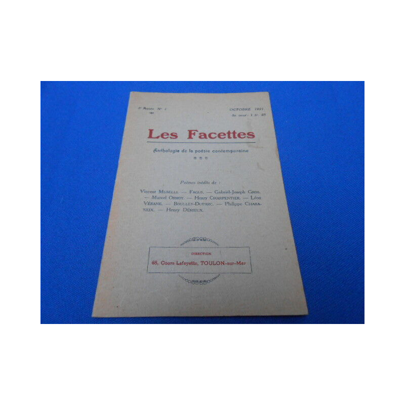 Les Facettes. Anthologie mensuelle de la poésie contemporaine. 8ème Année N°1. Oct. 1921