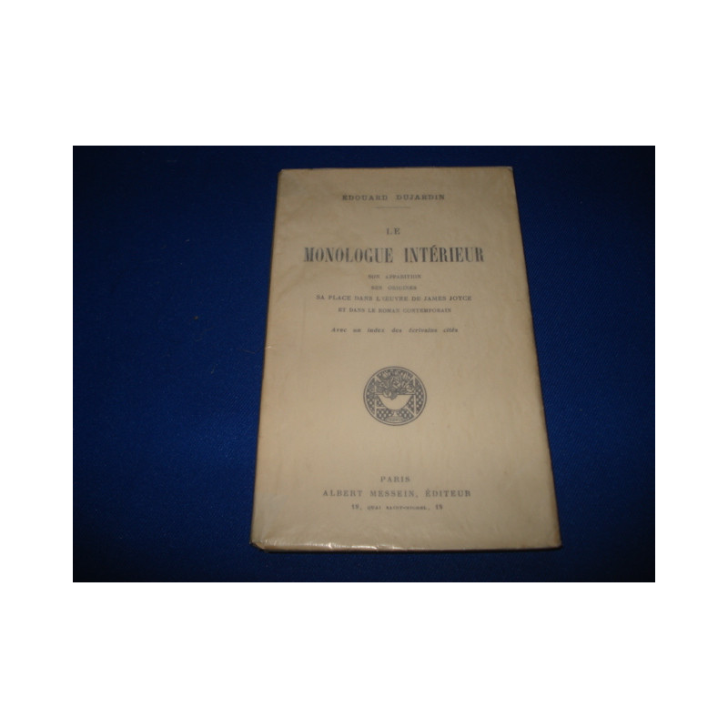 Le Monologue Intérieur. Son Apparition. Ses Origines. Sa Place dans l'oeuvre de James Joyce et dans le roman contemporain. Avec un index des écrivains cités. [ Envoi de l'Auteur signé]
