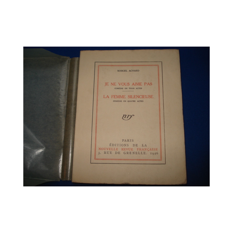 Je ne vous aime Pas Comédie en trois actes.. La Femme silencieuse comédie en quatre actes. [Exemplaire imprimé pour André Suarès]