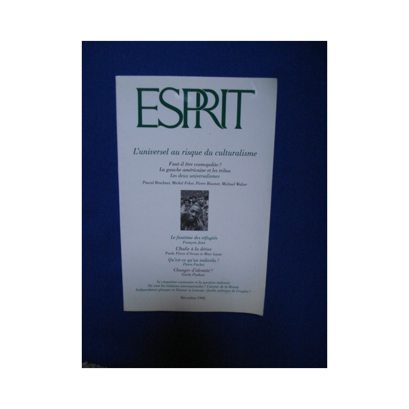 ESPRIT du 01/12/1992 - L'UNIVERSEL AU RISQUE DU CULTURALISME - LES DEUX UNIVERSALISMES - LE FANTOME DES REFUGIES - L'ITALIE A LA DERIVE - QU'EST-CE QU'UN INDIVIDU - CHANGER D'IDENTITE