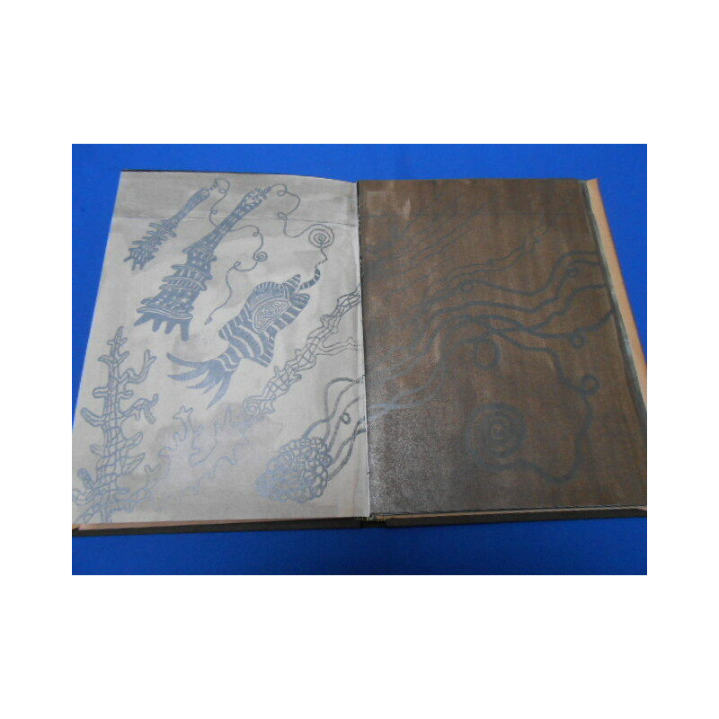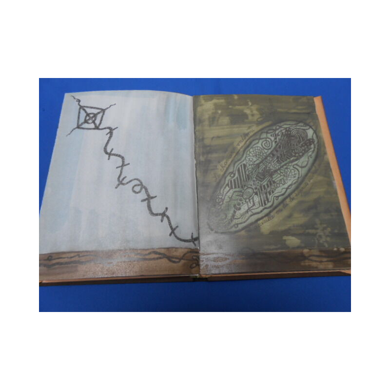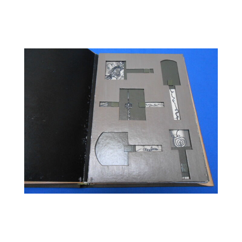 Un vol. relié pleine toile sous jaquette illustrée d'une composition originale int. frais. Tir. lim. à 50 exemplaires celui porte le n° 6. tous les exemplaires son signés par 'éditeur et le peintre.5ème de la collection polygraphies. Chaque exemplaire comporte un jeu à 5 cases et 25 estampes originales (dt 4 à double page) le tout sérigraphié. Toutes les planches ont été réhaussées en couleurs à la main par le peintre. Chaque exemplaire contient sous pochette un texte original de P. Verbena et un texte d'approche de E. M. de Matos