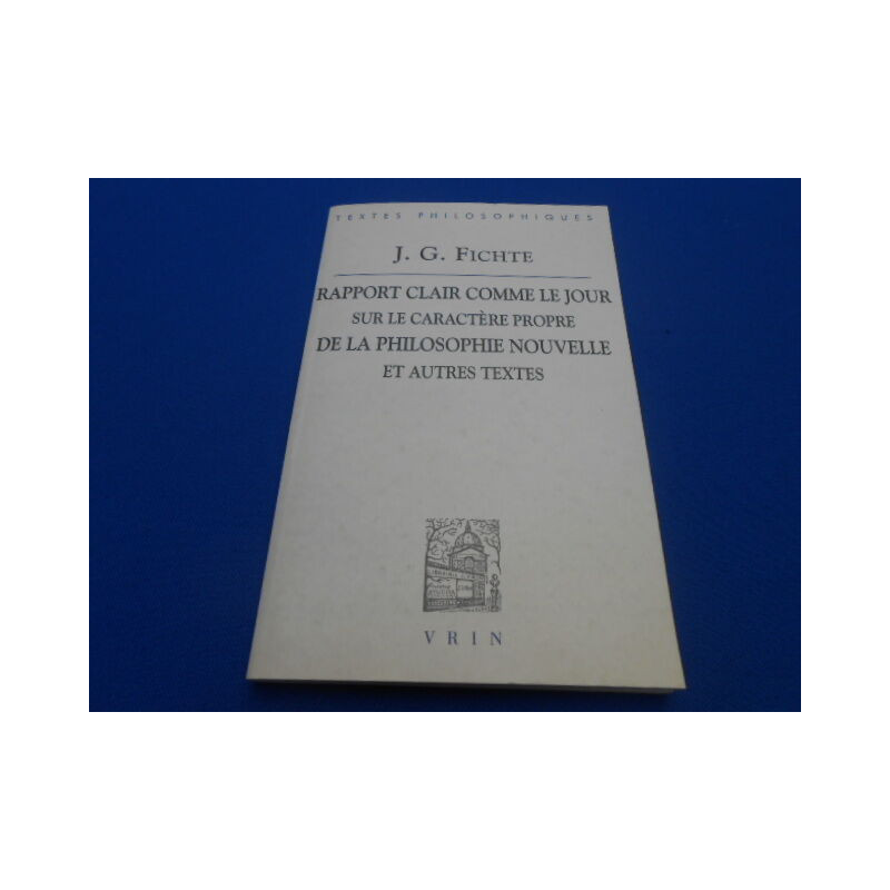 Apport clair comme le jour sur le caractère propre de la philosophie nouvelle et autres textes
