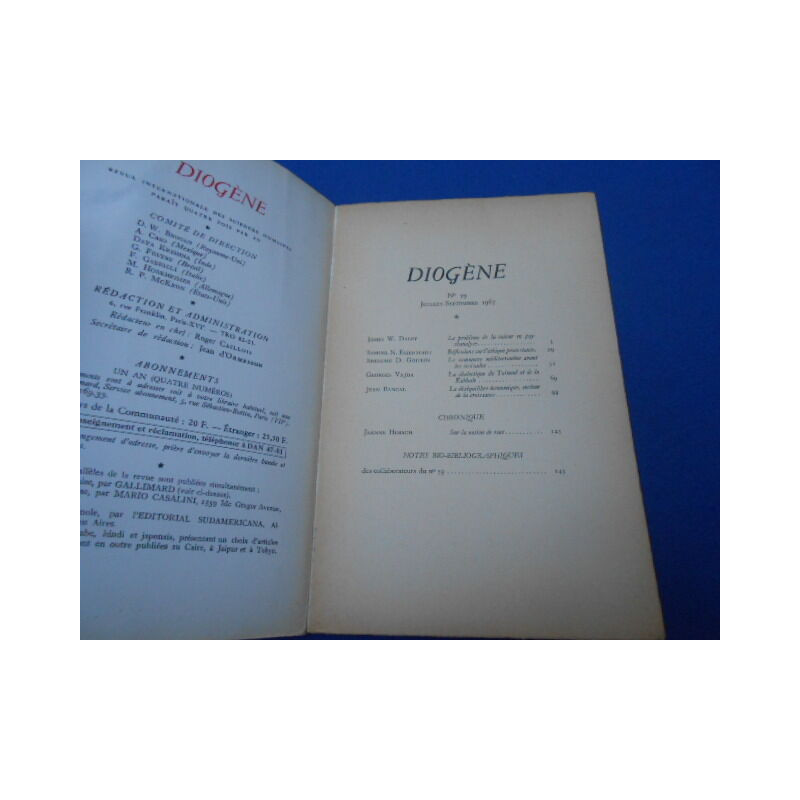 Revue: DIOGENE N°59. Revue Trimestrielle publiée sous les auspices du conseil International de la philosophie et des sciences humaines et avec l'aide de l'Unesco