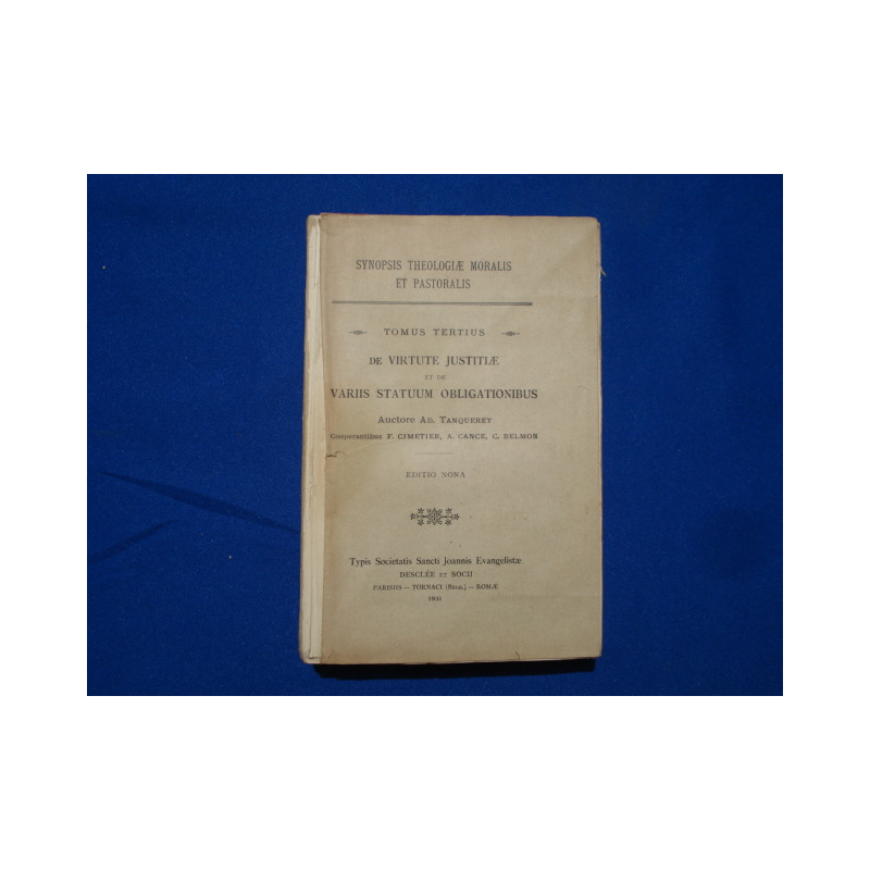 Synopsis theologiae moralis et pastoralis Tomus tertius De virtute justitiae et de variis statuum obligationibus Editio nona