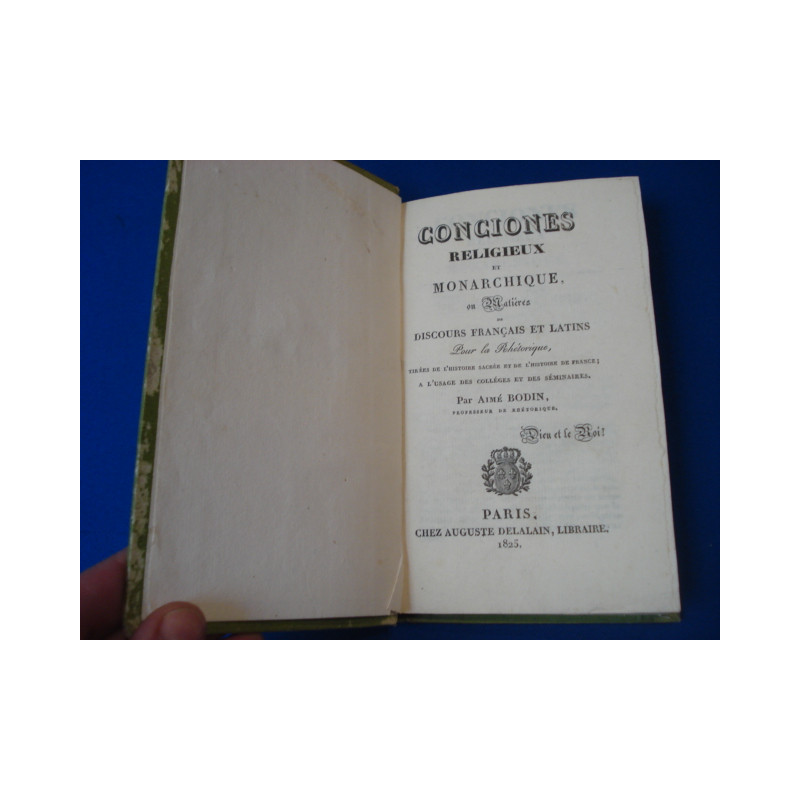 Conciones Religieux et Monarchique ou matières de discours Français et Latins pour la Rhétorique tirées de l'Histoire sacrée et de l'Histoire de France a l'usage des collèges et des séminaires