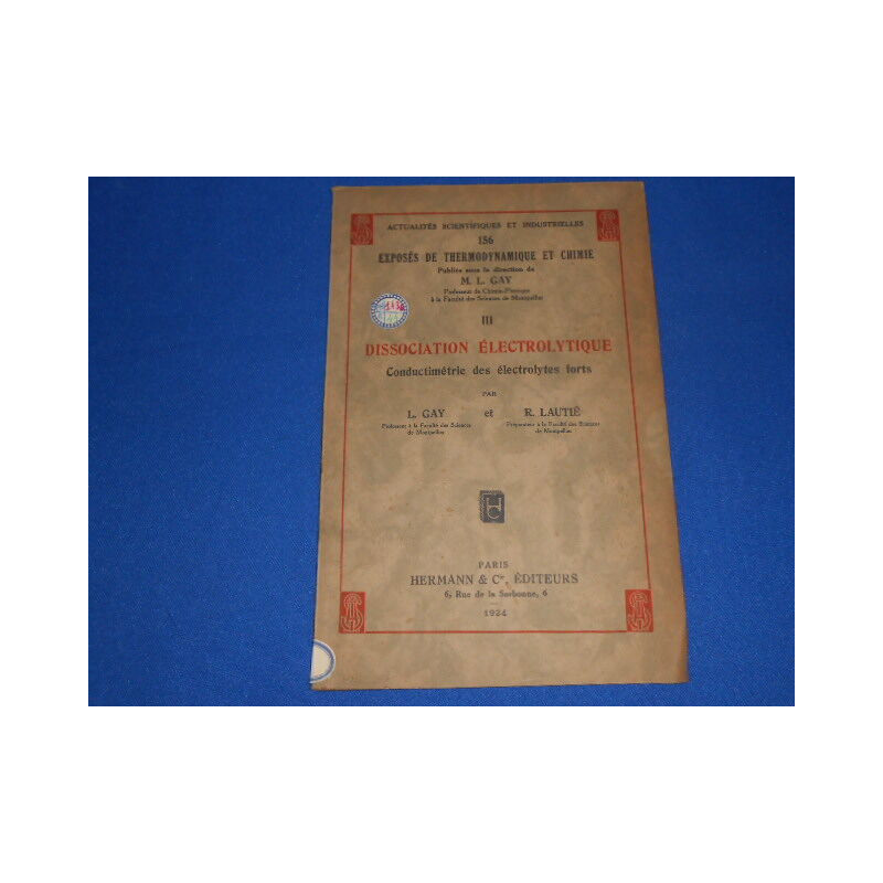 Revue: Actualités scientifiques et Industrielles. 156. Exposés de Thermodynamique et Chimie. III. Dissociation Electrolytique. Conductimétrie des électrolytes forts