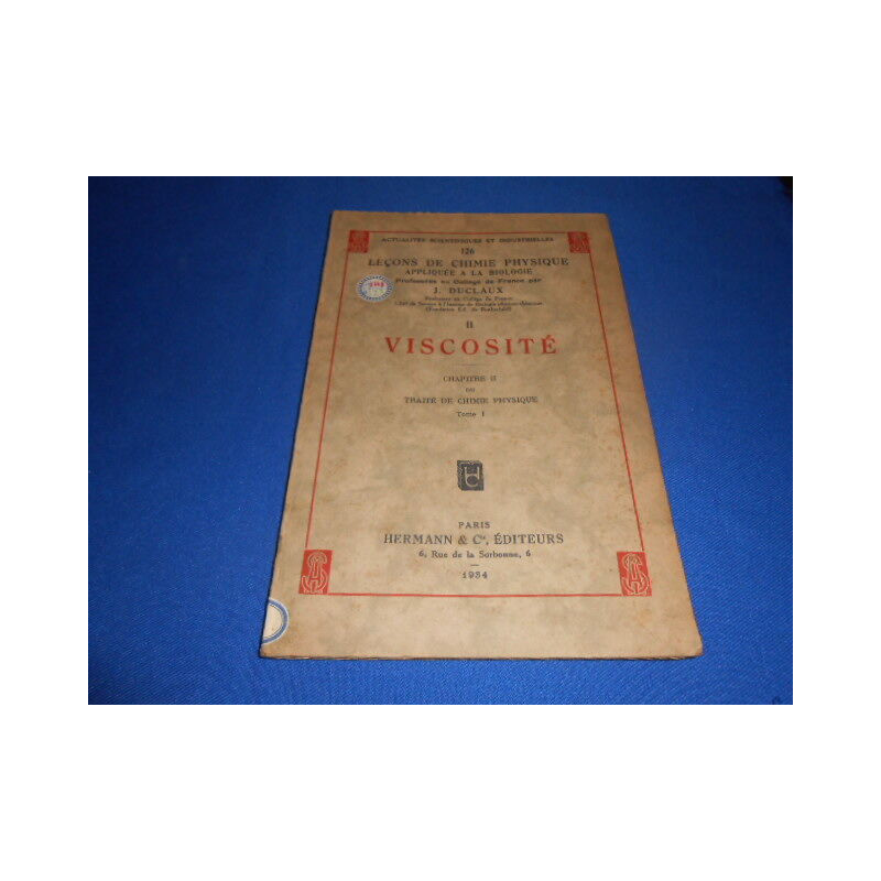 Revue: Actualités scientifiques et industrielles. Leçons de Chimie appliquée a la biologie. II . VISCOSITE