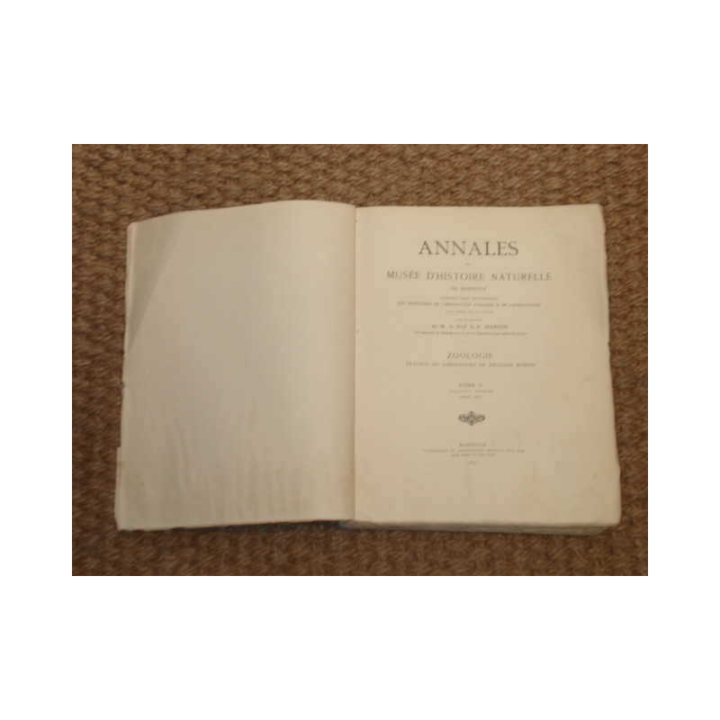 Annales du Musee d'Histoire Naturelle de Marseille. Publiées avec subventions des Ministères de l'Instruction publique et de l'Agriculture aux frais de la Ville. Zoologie. Travaux du Laboratoire de Zoologie Marine. Tome V