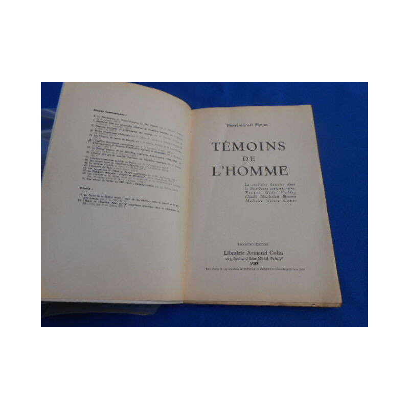 Témoins de l'Homme. La condition humaine dans la littérature contemporaine. Proust Gide Valéry Claudel Montherlant Bernanos Malraux Sartre Camus