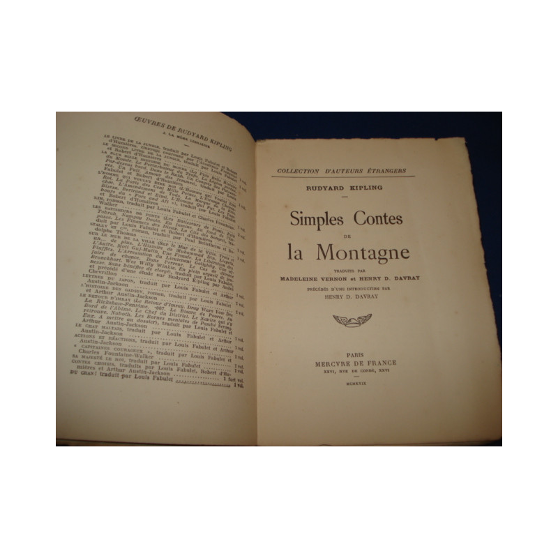Simples Contes de la Montagne. Traduits par Madeleine Vernon et Henry D. Davray précédés d'une introduction par Henry D. Davray. [Tirage de tête]